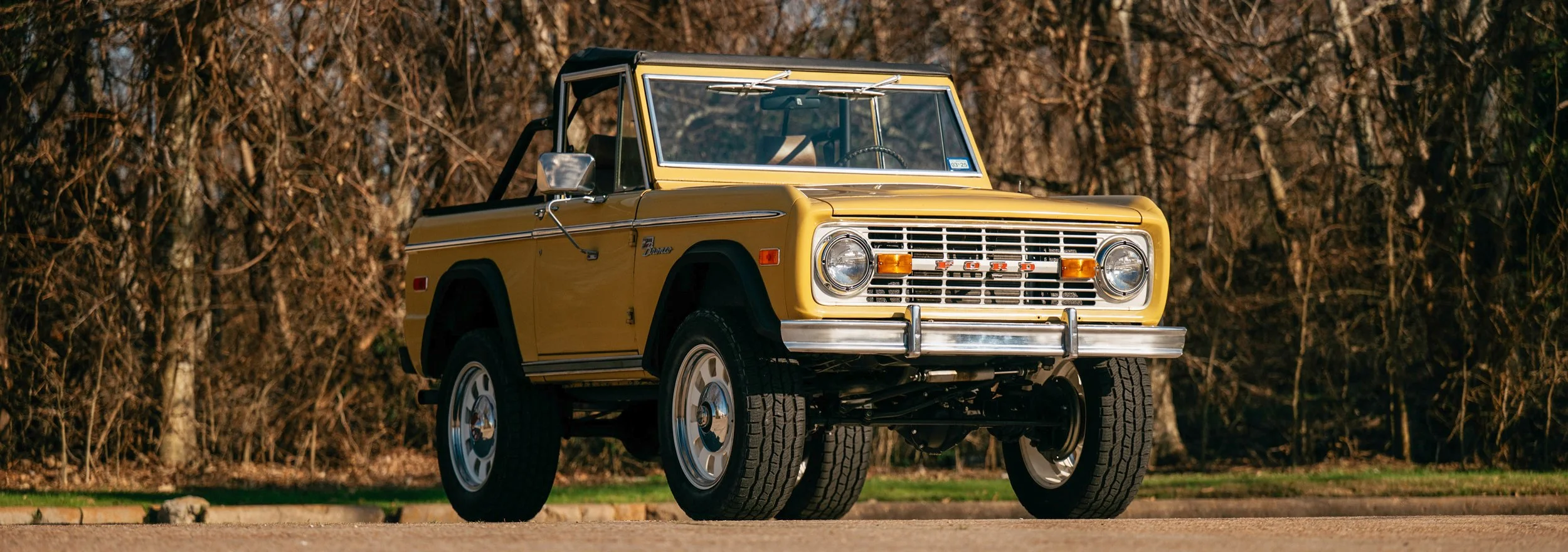 This 1972 Ford Bronco perfectly balances a soulful, unrestored vintage exterior with a modern, body-off mechanical restoration. Powered by a new Blueprint 302 V8 crate engine and a rebuilt C4 transmission, this lifted icon features high-end upgrades like Borgeson power steering, power disc brakes, and Detroit Steel Mack wheels wrapped in Cooper AT3 tires. The cabin offers a rugged yet refined escape with "Weathered Baseball Glove" custom leather, Dakota Digital gauges, and a Retro Sound Bluetooth system with Kicker speakers. Whether you’re using the AMP powered steps to climb in or swapping between the soft and bikini tops, this Bronco is a masterclass in preserved heritage and modern performance.